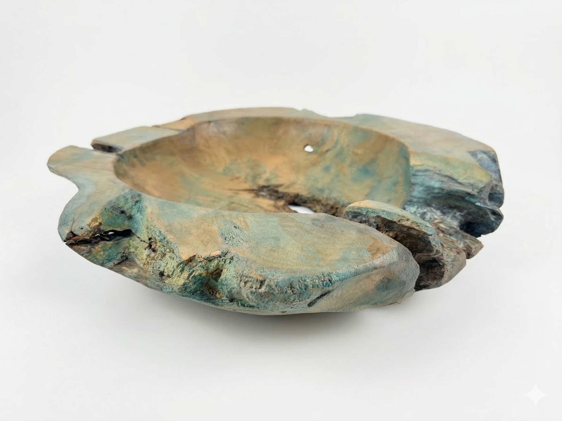 100% teak vessel - hand painted to give a patina effect